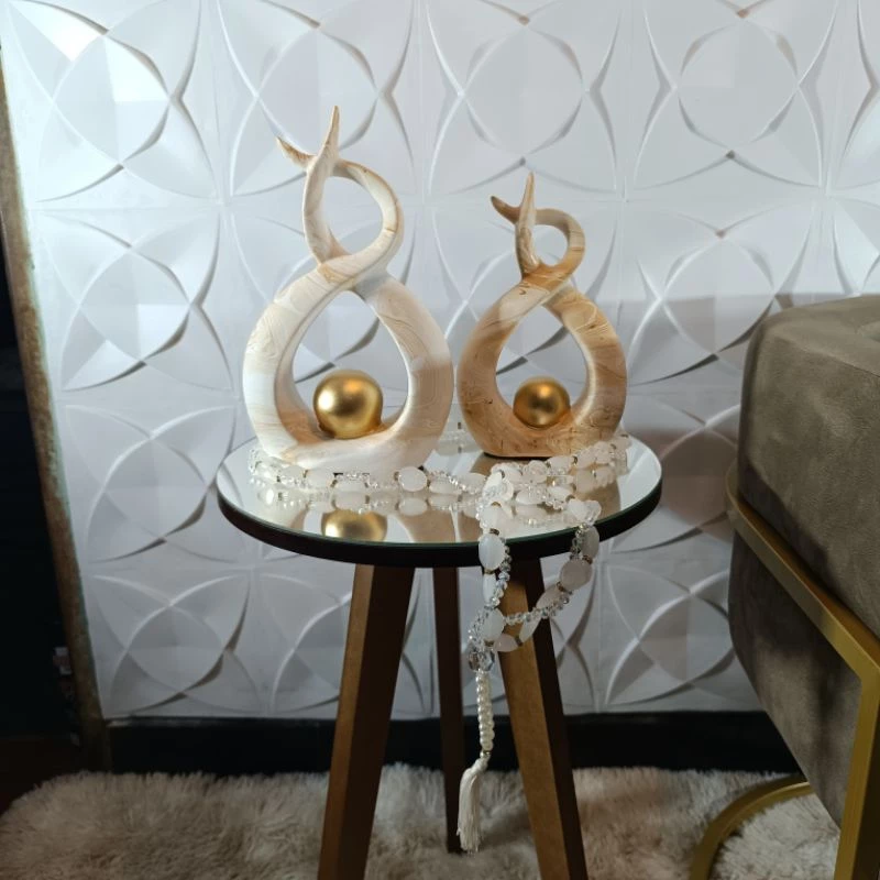 Detalhes do Produto: • Conjunto decorativo com 2 esculturas em louça de design abstrato • Esfera central dourada que simboliza equilíbrio e sofisticação • Material: louça de alta qualidade, acabamento fosco • Cor: tons nude/bege que evocam naturalidade e leveza • Estilo contemporâneo com inspiração orgânica e minimalista • Medidas: – Peça maior: 30 x 29 cm – Peça menor: 25 x 16 cm • Conteúdo do pacote: 2 peças – 1 escultura maior + 1 escultura menor