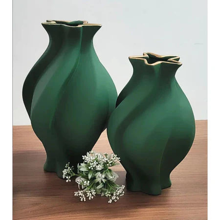 • Material: Cerâmica 100% artesanal • Composição: Dupla de vasos (acessórios não inclusos) • Dimensões vaso grande: 30 cm (A) x 20 cm (L) • Dimensões vaso pequeno: 25 cm (A) x 15 cm (L) • Estilo: Moderno, minimalista e curvilíneo • Aplicações: Ideal para sala, quarto, rack, aparador, cozinha, festas e mais • Disponibilidade: Consulte cores e estoque via chat • Fotos reais dos produtos